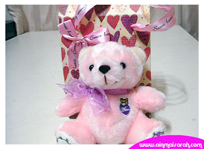 Ini pula teddybear pemberian Syafiqah. Warna pink gitu! Sesuai dengan Rumah Pink AinMaisarah! =D Terima kasih juga atas pemberian ini.