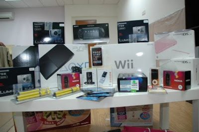 Tengok tu. Ada PS2. Ada kamera LUMIX. Ada telefon bimbit NOKIA. Ada macam-macam lagi! Kak Ain difahamkan, untuk hadiah pemenang mingguan pertama ini, kesemuanya ada 18 hadiah mewah yang menanti iaitu: